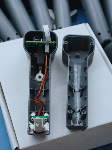 I designed Nizi Scan from the ground up for injection molding, testing multiple FDM and SLA prototypes across different users and hand sizes. I engineered the enclosure with internal ribs, guide pins, and precision-aligned walls to ensure robust assembly. I also developed a custom-tuned button mechanism that delivers a tactile click, setting it apart from typical barcode readers.